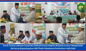 Bungo – Lensaone.com – Sembilan Anggota BPD Dusun Empelu resmi di lantik dan dilaksanakan Di Aaula Kantor Camat Tanah Sepenggal yang di lantik Oleh Camat Zukrianto.S.Pt M.Si,Rabu, (13-11-2019).