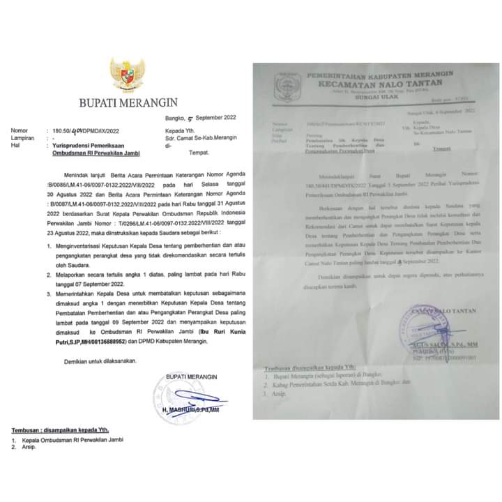 Dan surat pemerisaan abusman cabang jambi Nomor 180.50/401/dpmd/IX/2022