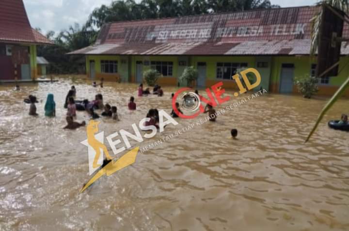 saat di komfirmasi sama awak media Lensaone.id. kepada kepala sekolah (kepsek) SDN 18/1 teluk (Latis) mengatakan”lewat sambungan jejaringan sosmed Whatsapp sudah dua hari ini murid sekaloh kami tiga kelas terpaksa kami liburkan, kerena ruangan biasa tempat mereka belajar sudah terendam air banjir.