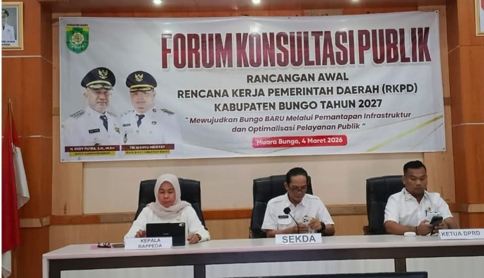 Kegiatan tersebut digelar di Ruang Rapat Cempaka Kuning, Kantor Bappeda Bungo, dan dihadiri unsur legislatif serta jajaran pemerintah daerah.Rabu 4 Maret 2026